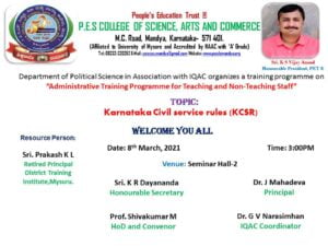 lecture delivered by Dr.H.V.Ravindra, Principal, PESCE, Mandya