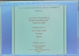 A special talk on awareness programme on “Research and Project” held on 09-12-2020 and lecture delivered by Dr.H.V.Ravindra